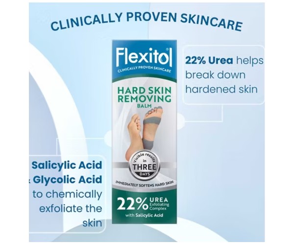 Flexitol Hard Skin Removing Balm is an intensely softening balm that has been formulated to soften hard skin build up on the feet.